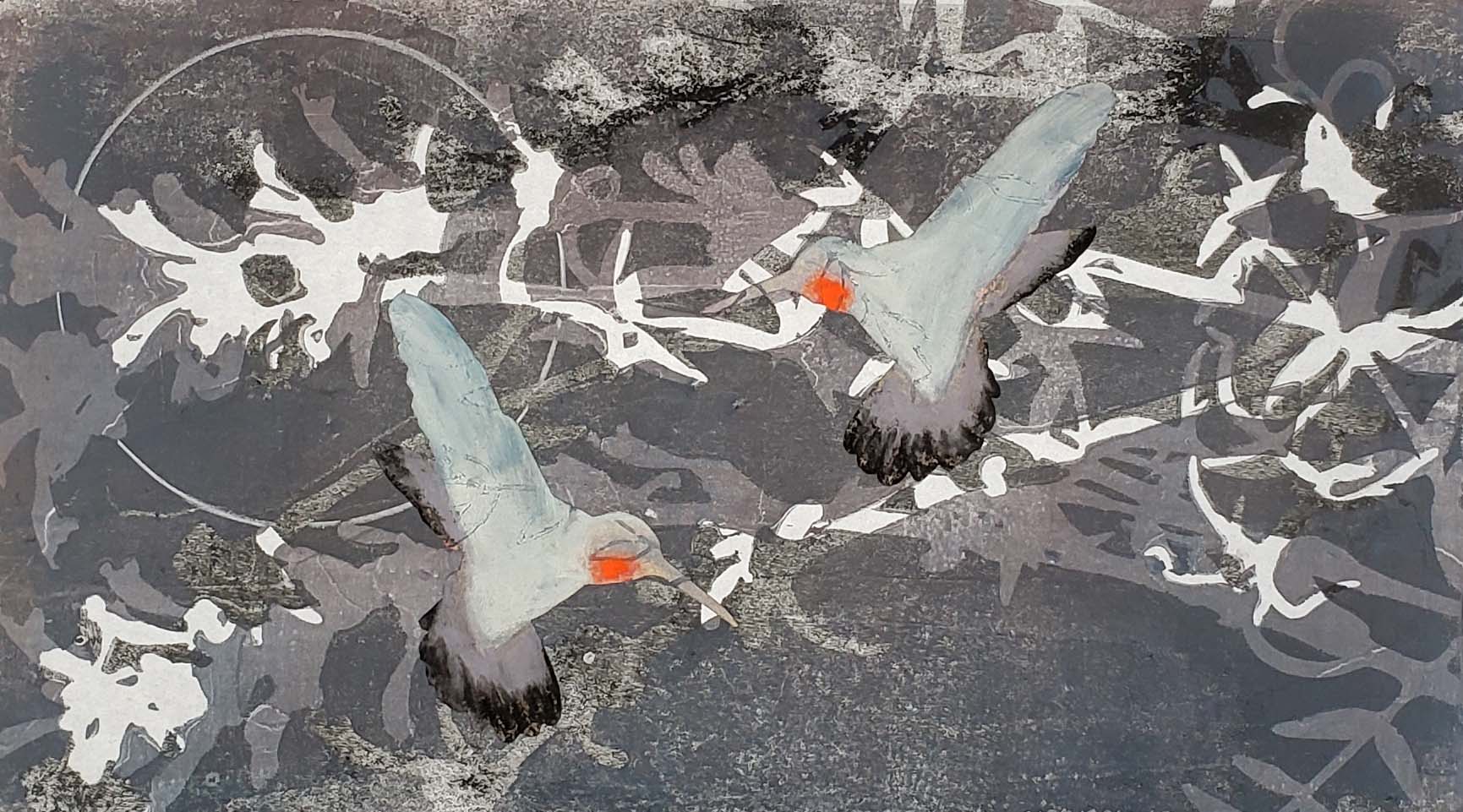 gelatin monotype collage on paper.